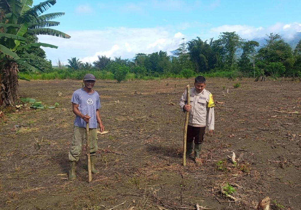 Polsek Ampana Tete Tanam 30 Kg Bibit Jagung di Lahan Poktan Maju Bersama