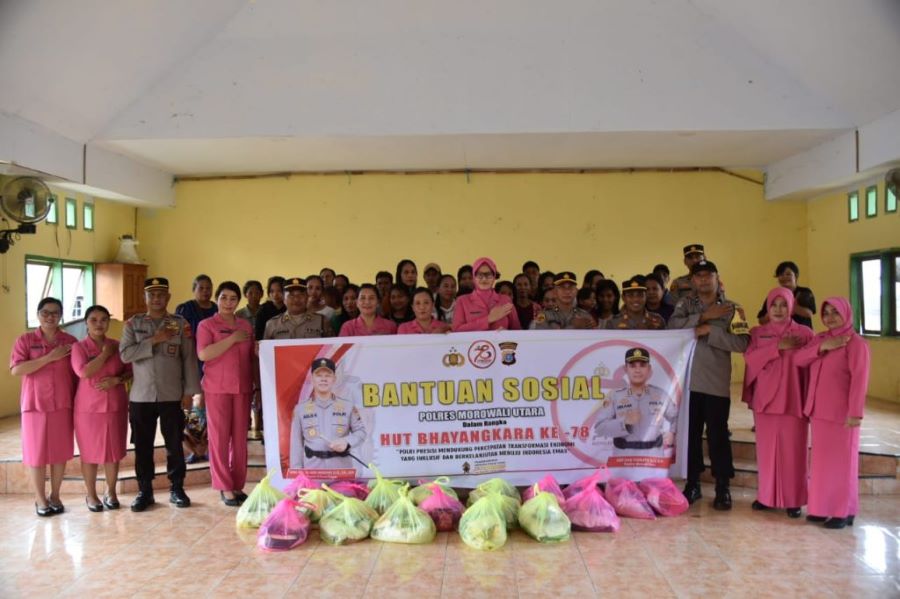 “Hari ini kami membagikan sembako sebanyak 500 paket kepada warga Kabupaten Morowali Utara yang berhak mendapatkan. Kegiatan ini merupakan rangkaian kegiatan menjelang HUT Bhayangkara ke -78 tahun,” ungkap Kapolres Morowali Utara, AKBP Imam Wijayanto, S.I.K., M.H.