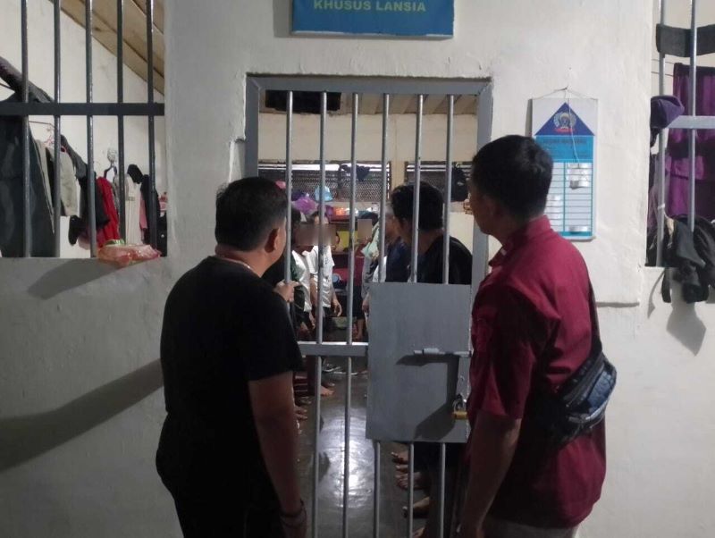 Didampingi oleh petugas jaga malam, KPLP Finley E. Ruindungan selaku Perwira Piket memeriksa seluruh kamar di masing-masing blok hunian warga binaan, Sabtu (3/8/24) malam.