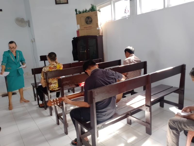 TOUNA – Warga Binaan pemasyarakatan (WBP) yang beragama Kristen di Lembaga Pemasyarakatan (Lapas) Kelas IIB Ampana mengikuti ibadah minggu di Gereja Oikumene Lapas setempat, Minggu (18/8/24) pagi pukul 09.00 wita.