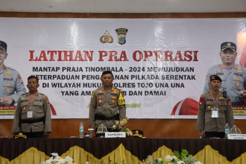 Touna – Dalam rangka persiapan menghadapi Pilkada di Kabupaten Tojo Una Una (Touna) tahun 2024, Polres Touna menggelar Latihan Pra Operasi Mantap Praja Tinombala 2024, Senin (19/08/2024) di Ball Room Hotel Ananda Ampana.