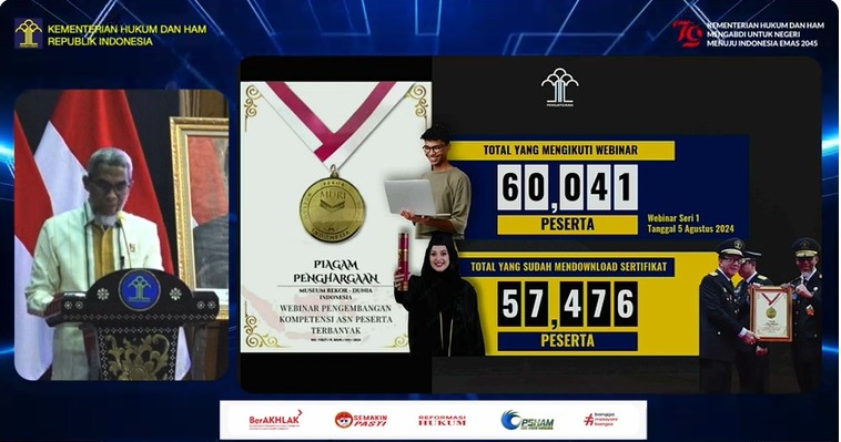 Webinar ini dibuka oleh Kepala BPSDM, Ir. Razilu, M.Si., CGCAE, dan dihadiri oleh pimpinan tinggi serta jajaran ASN Kementerian Hukum dan HAM dari seluruh Indonesia, baik secara langsung maupun virtual.