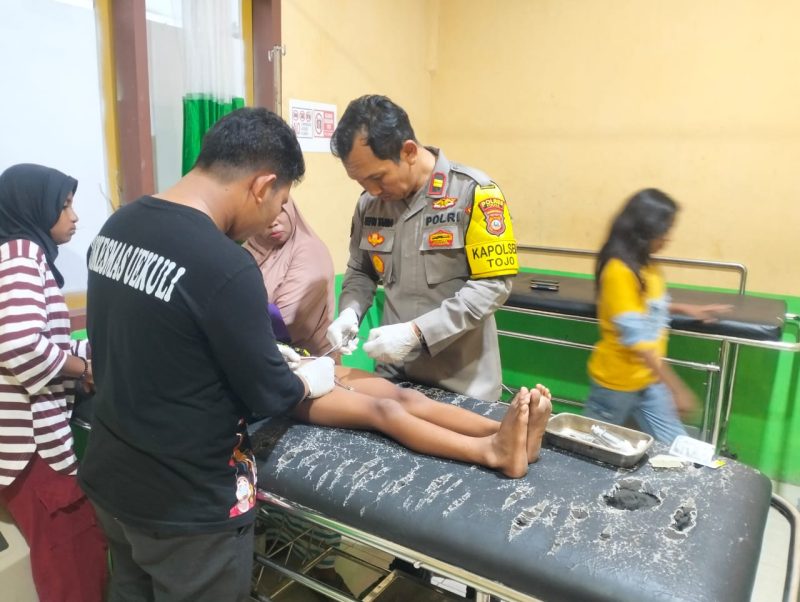Touna – Bekerja sama dengan tenaga medis Puskesmas Uekuli serta didampingi Bhabinkamtibmas Desa Tawaya Bripka Akmal, Kapolsek Tojo Iptu Jefri Henrik Tania S.K.M, M.H. laksanakan Bakti Sosial sunatan gratis.