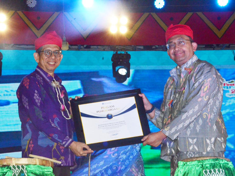 Proses penyerahan penghargaan tersebut turut disaksikan secara langsung oleh Menteri Hukum dan HAM, Supratman Andi Agtas, beserta para tokoh penting baik dari unsur Kemenkomarves, Kemenparekraf, Unsur Pemerintah Daerah, segenap Forkopimda dan Ribuan Masyarakat Kabupaten Poso.