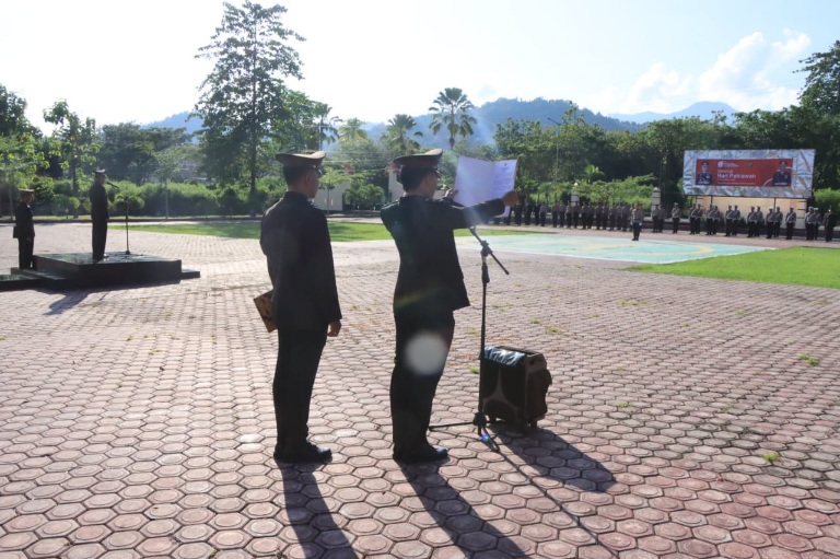 Bertindak sebagai Inspektur Upacara (Irup) Wakapolres Touna Kompo Mulyadi dan diikuti oleh pleton PJU, Pama, Staf Gabungan, Sat Lalu-lintas, serta pleton gabungan Sat Intel, Sat Reskrim, Sat Narkoba dan ASN Polri.
