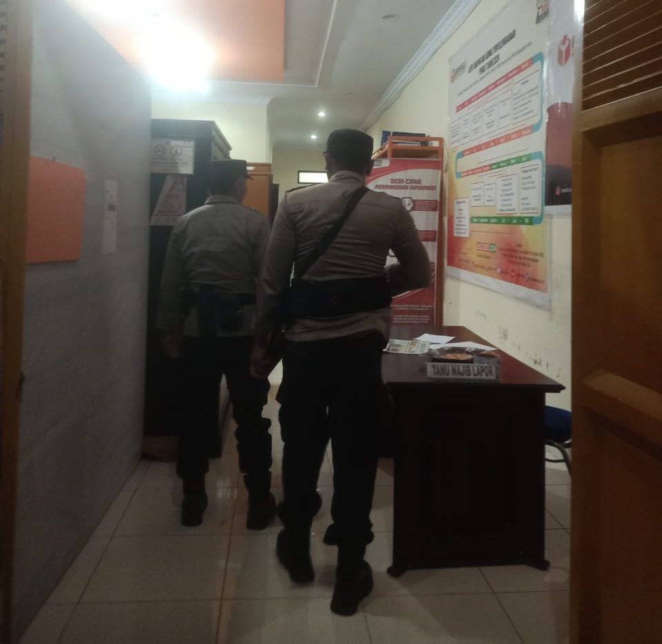 Touna – Kasubsatgas PAM Kantor Penyelenggara Pilkada Operasi Mantap Praja (OMP) Tinombala 2024 Polres Touna AKP Iskandar S. Deypaha, S.H. mengecek personil jaga kantor penyelenggara, Senin malam (18/11/2024).
