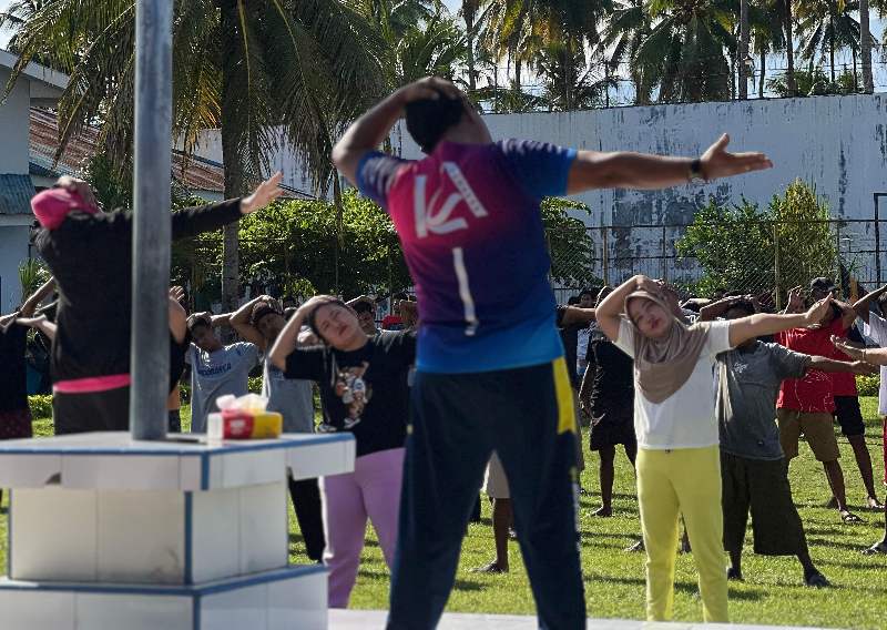TOUNA – Lembaga Pemasyarakatan (Lapas) Kelas IIB Ampana mengadakan kegiatan senam kebugaran bersama antara Warga Binaan Pemasyarakatan (WBP) dan pegawai staf Lapas, Jumat (22/11/24) pagi.