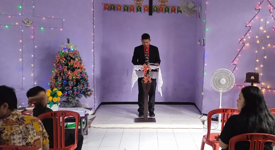 Ibadah yang dimuali pukul 09.00 WITA, dipimpin oleh Pendeta Arce Kalahe dari Gereja GKI Poso Ampana.