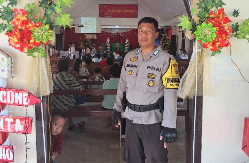 “Personil Polsek Ulubongka Bripka Risman dan personil Subsektor Tojo Barat Polsek Tojo Aipda Viktor, mereka melakukan pengamanan ibadah akhir tahun di Gereja yang ada diwilayahnya masing-masing,” ujar Iptu Martono.