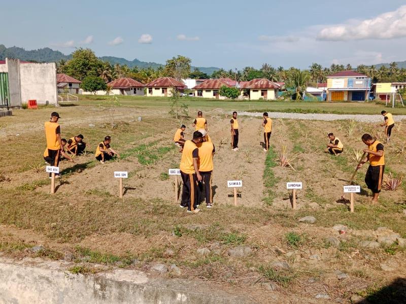 Touna – Dalam rangka mendukung program ketahanan pangan, Polres Tojo Una Una melakukan budidaya tanaman buah nanas dengan memanfaatkan lahan kosong yang ada di sekitar markas.