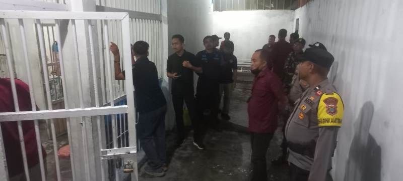 Sulteng Media, Touna – Kapolsek Ampana Kota, Iptu Maryanto menghadiri kegiatan penggeledahan serentak yang digelar oleh Lembaga Pemasyarakatan (Lapas) Kelas II B Ampana di seluruh blok hunian, Jumat malam (10/10/2025).