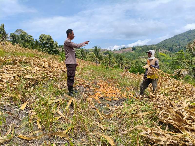 Sulteng Media, TOUNA – Kanit Binmas Polsek Ulubongka, Aipda Munib, turun langsung mendampingi warga dalam kegiatan panen jagung di Desa Bonevoto, Kecamatan Ulubongka, Minggu (25/1/2026). Aksi ini merupakan bagian dari upaya Polri dalam mendukung penguatan ketahanan pangan di tingkat desa.