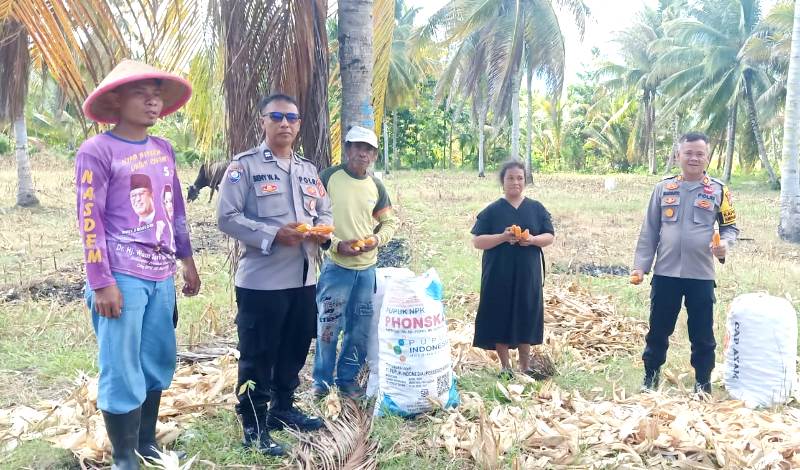 Bertempat di Desa Sansarino, Kecamatan Ampana Kota, Kapolsek didampingi Kanit Binmas Aiptu Beny Abubakar dan Bhabinkamtibmas Aipda I Nengah S., melakukan pengecekan langsung terhadap proses panen jagung di lahan milik warga setempat.
