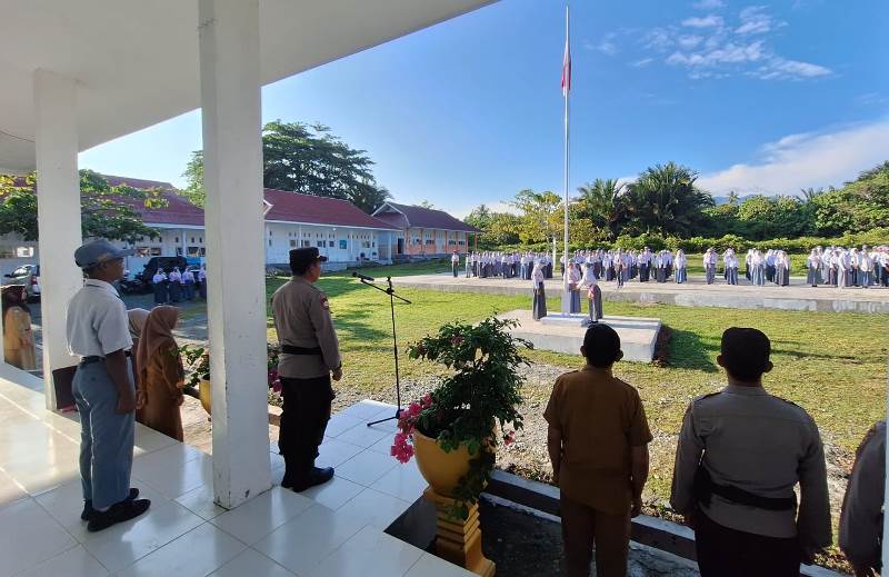 Wakapolres Touna, Kasat Binmas dan Kapolsek Jajaran Jadi Irup di Sejumlah Sekolah di Wilayah Touna