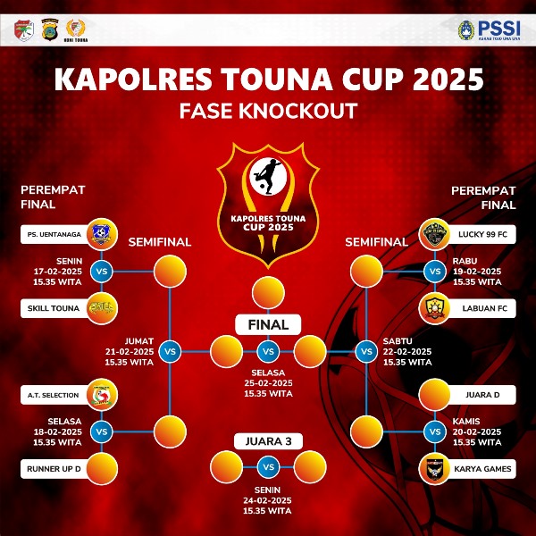 TOUNA, Sulteng Media – Babak penyisihan Open Turnamen Sepak Bola Kapolres Touna Cup 2025 menyisakan…